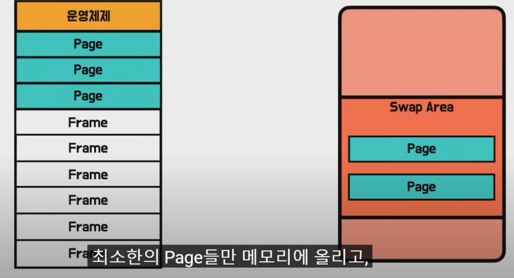 - 실제 디스크를 마치 메모리처럼 사용하는 것을 `가상 메모리`라 하며 프로세스 입장에서는 디스크 공간이 아닌 실제 메모리로 인식.