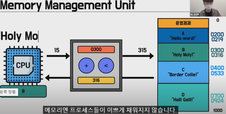 - 하지만 CPU는 어떤 프로세스인지 알 필요 없기때문에 논리주소만 읽음.