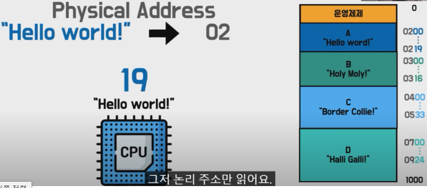 - 하지만 CPU는 어떤 프로세스인지 알 필요 없기때문에 논리주소만 읽음.