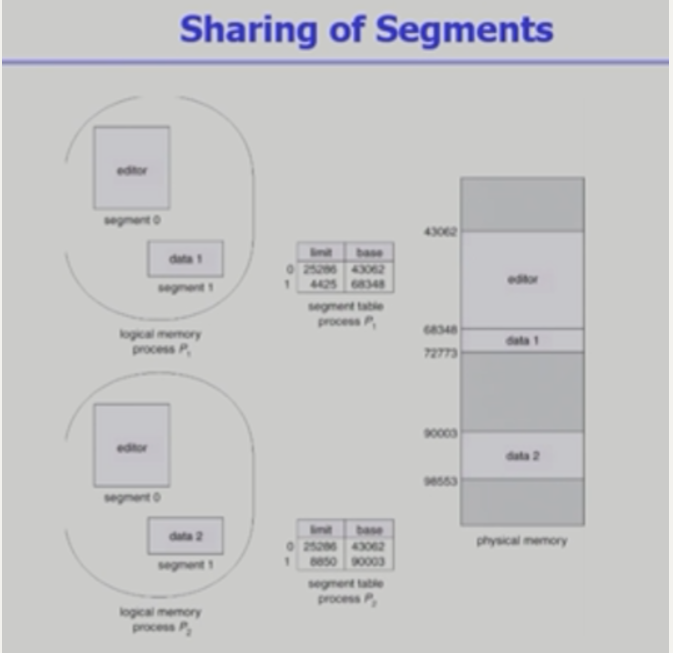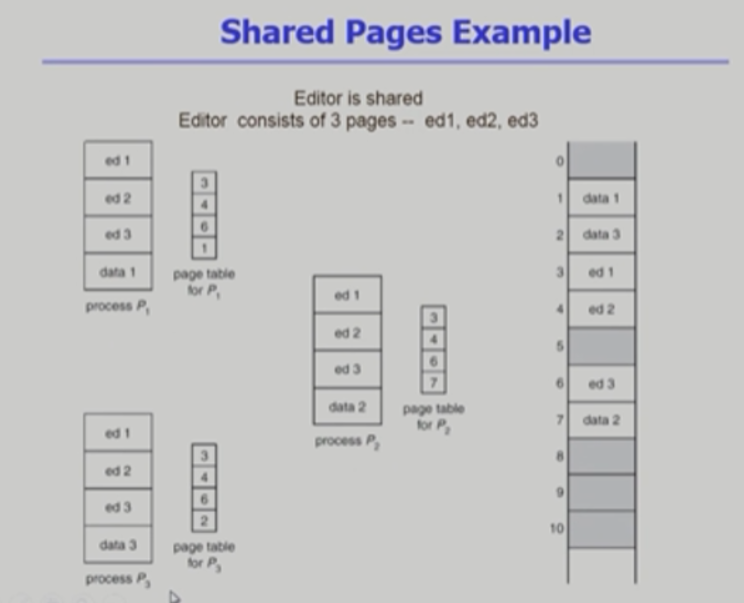 - Shared code는 모든 프로세스의 logical address space에서 동일한 위치에 있어야함