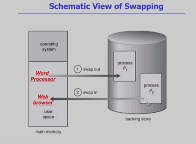 - 프로세스를 일시적으로 메모리에서 backing store로 쫓아내는 것
