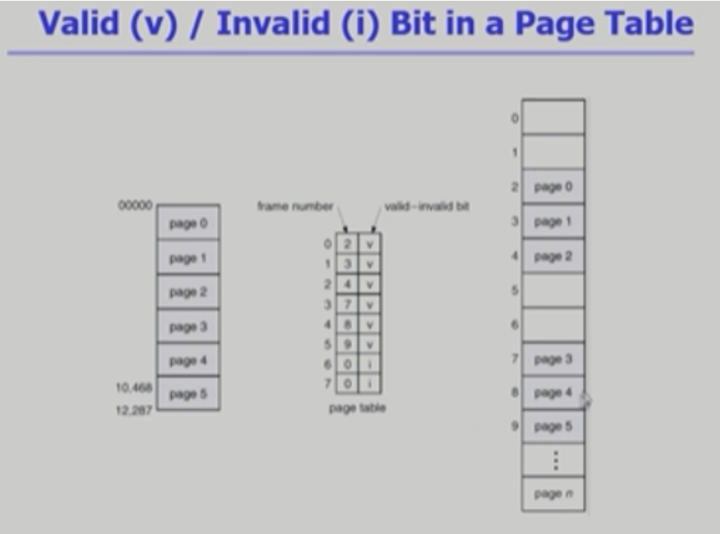 - page table에는 주소 정보 뿐만 아니라 v, i. bit도 가지고 있음.