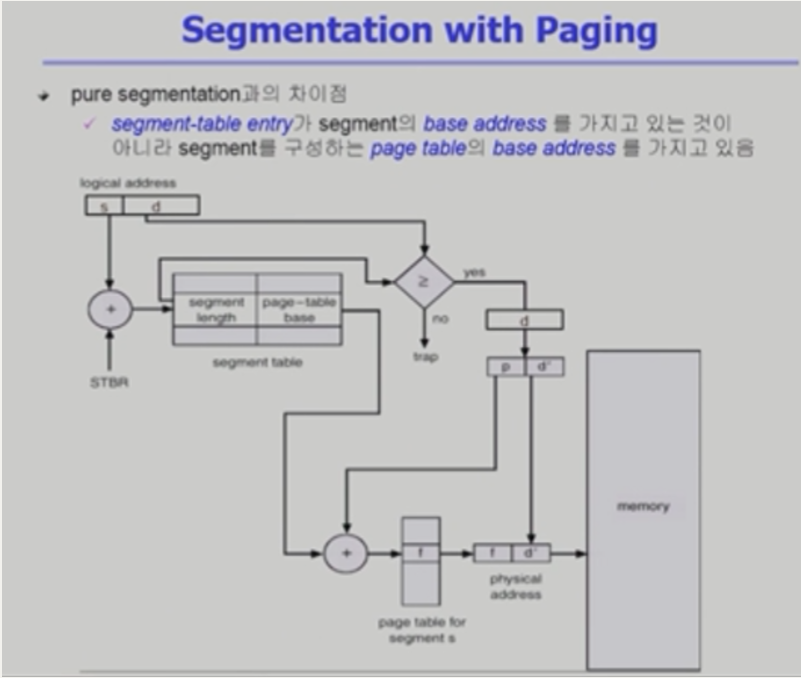 - Segment-table base register(STBR) : 물리 메모리 segment table위치