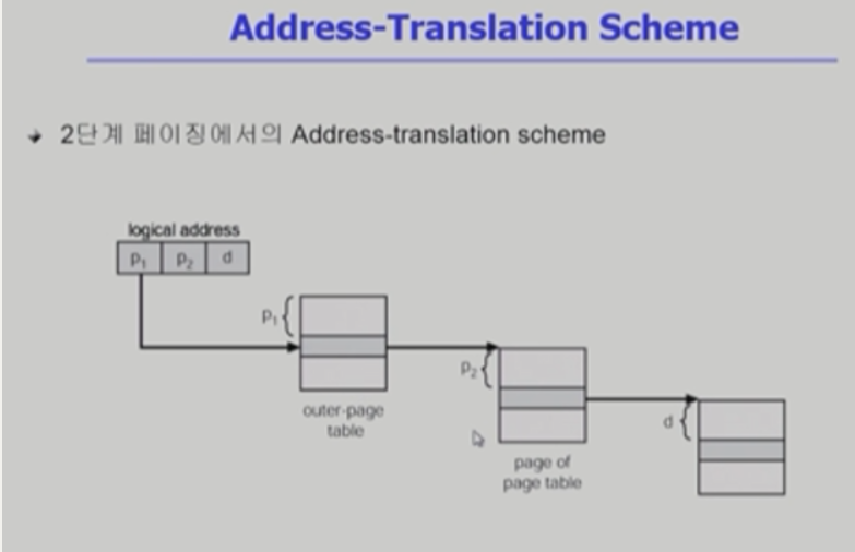 - 각 단계의 페이지 테이블이 메모리에 존재하므로 logical address의 physical address 변환에 더 많은 메모리 접근 필요