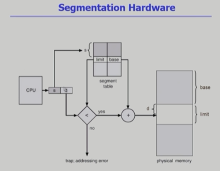 - 프로그램이 자신에게 할당 된 Limit register에 불가능한 address 요청하면 trap이 걸려 하던일을 멈추고 CPU 제어권이 운영체제로 넘어감.