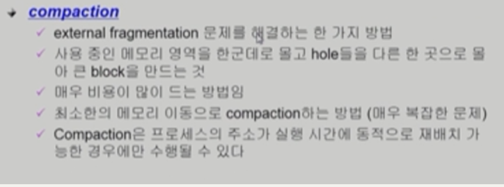 - NonContiguous allocation : 하나의 프로세스가 메모리 여러 영역에 분산