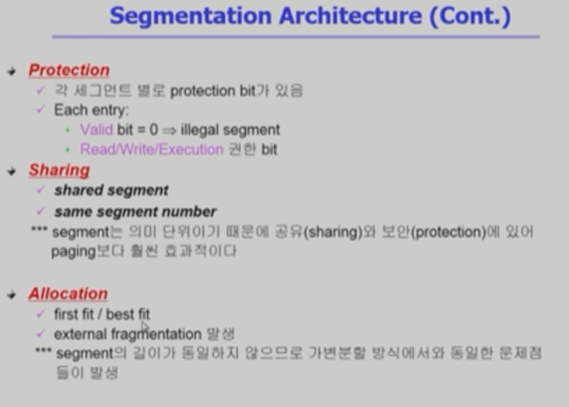 - 의미단위인 Protection, Sharing에서는 세그멘테이션이 유리(공유, 보안)