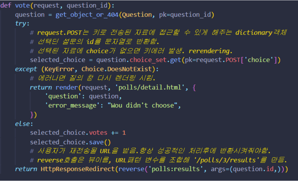 - 패턴 경로 문자열에서 일치하는 패턴 이름들이 question_id -> pk로 수정됨.