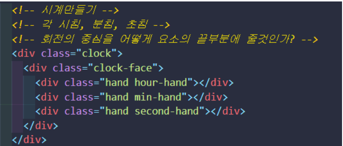 - 각 시계침들을 요소로 1초마다 set Date를 불러 업데이트.(setInterval)
