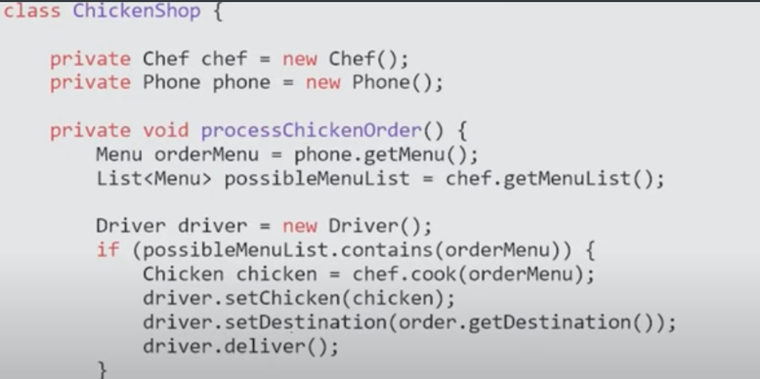 - 객체지향을 치킨 가게는 스스로 치킨을 튀기고 배달해줌.