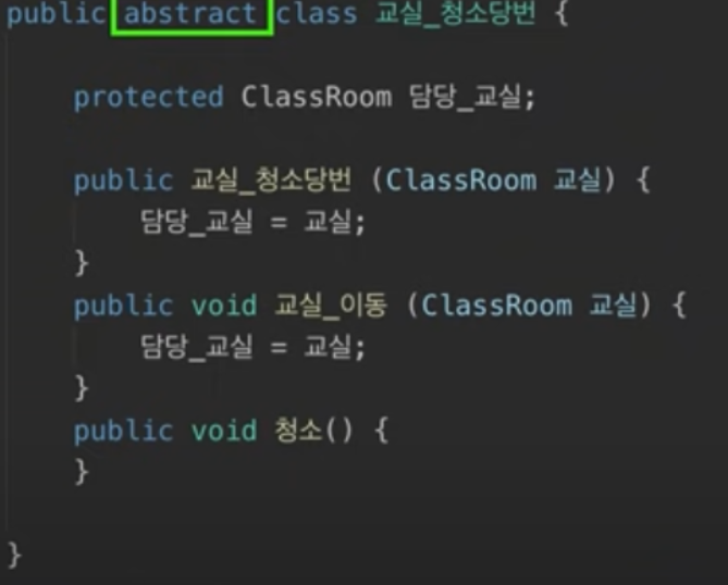 - 그냥 자식클래스의 공통점을 가져오기 위한 추상 클래스 ( 부모 클래스 )